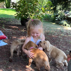 Ruby - Went home to a family in Bend OR area she gets to visits often we have even coordinated some play days at the trainers, so we have gotten to see this girl grow from a spicey puppy to a beautiful young lady. she as a loving family and even gets to go bird hunting occasionally.