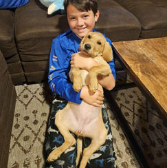 Roux - is in Colorado now and is a chip off her the block; earing training certification for obedience and has taken to duck hunting naturally but her family is where the snuggles are and that is where her heart truly lies with all the loving from her kiddos or her big brother.